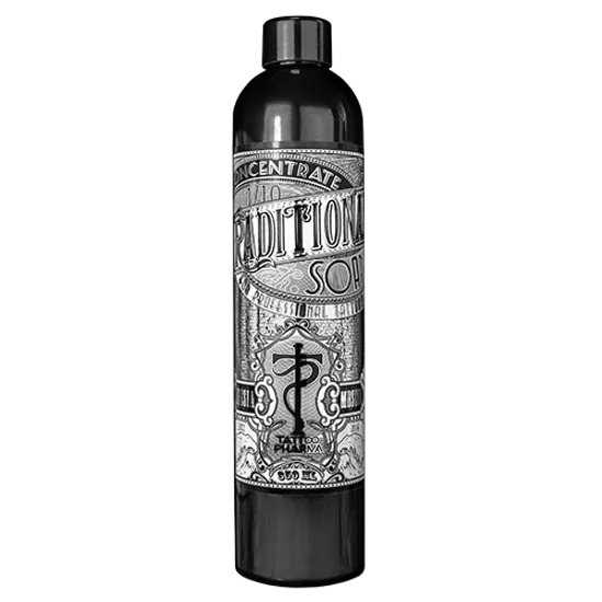 Не забывайте очищать кожу от волос и ороговевших частиц с помощью бритвы перед каждым сеансом, это позволит Вам работать быстрее и чище. Выбирайте более мягкие материалы для протирания кожи, это снизит раздражение. Нетканые салфетки, пропитанные Traditional Soap, могут впитать в себя гораздо больше лишней краски, чем бумажные. Причиной интенсивного покраснения вокруг свежей татуировки является постоянное механическое трение салфетками о кожный покров, Traditional Soap легко стирает все излишки, сводя количество вытираний к необходимому минимуму.